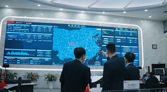 (图为运控人员在AOC大厅研判航班信息)