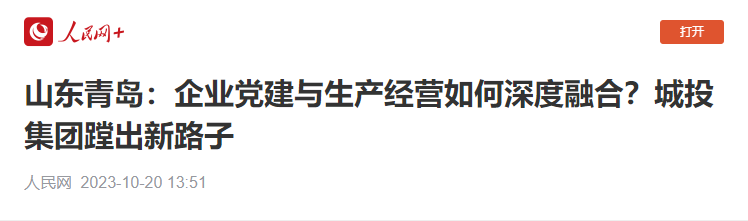 人民网:企业党建与生产经营如何深度融合?青岛城投集团蹚出新路子